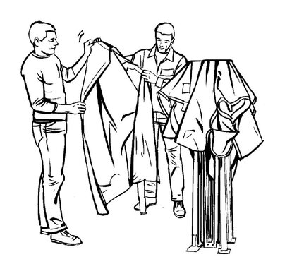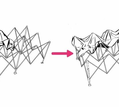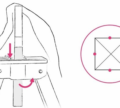 Place the roof still folded in the centre of the structure. Then open it and unfold half of it, checking that the centre of the canvas matches the centre of the structure.