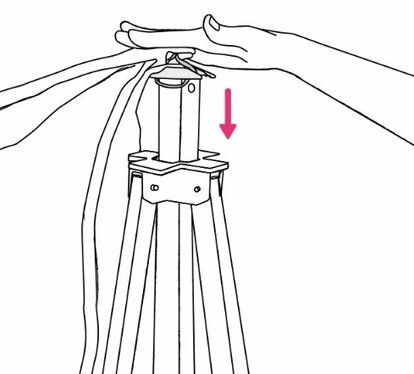Lift the tent slightly by gripping it with the central scissors and close it by pushing inwards. Do not push the legs!
