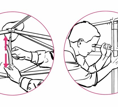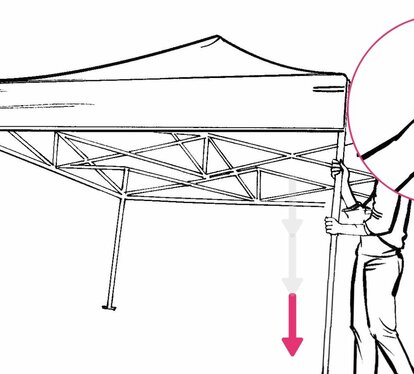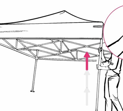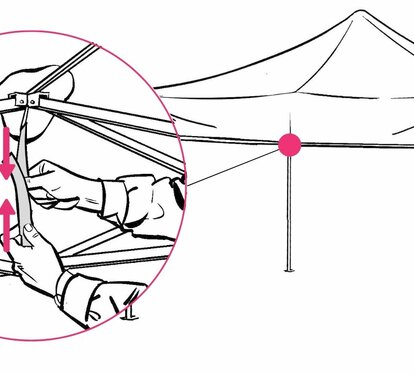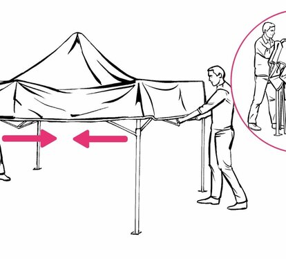 Extend the structure by about 1/3. To do this, grip the scissors in the middle of the roof structure; in the case of rectangular tents, grip the scissors on the short side. Caution: do not pull the gazebo legs and do not open the frame completely.