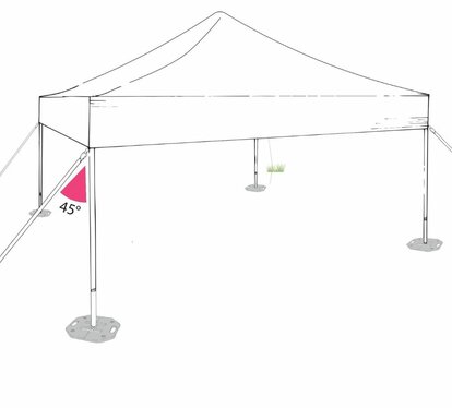 The gazebo must always be properly secured to the ground. This can be done using a fastening set consisting of straps and pegs or cast iron stackable weights.